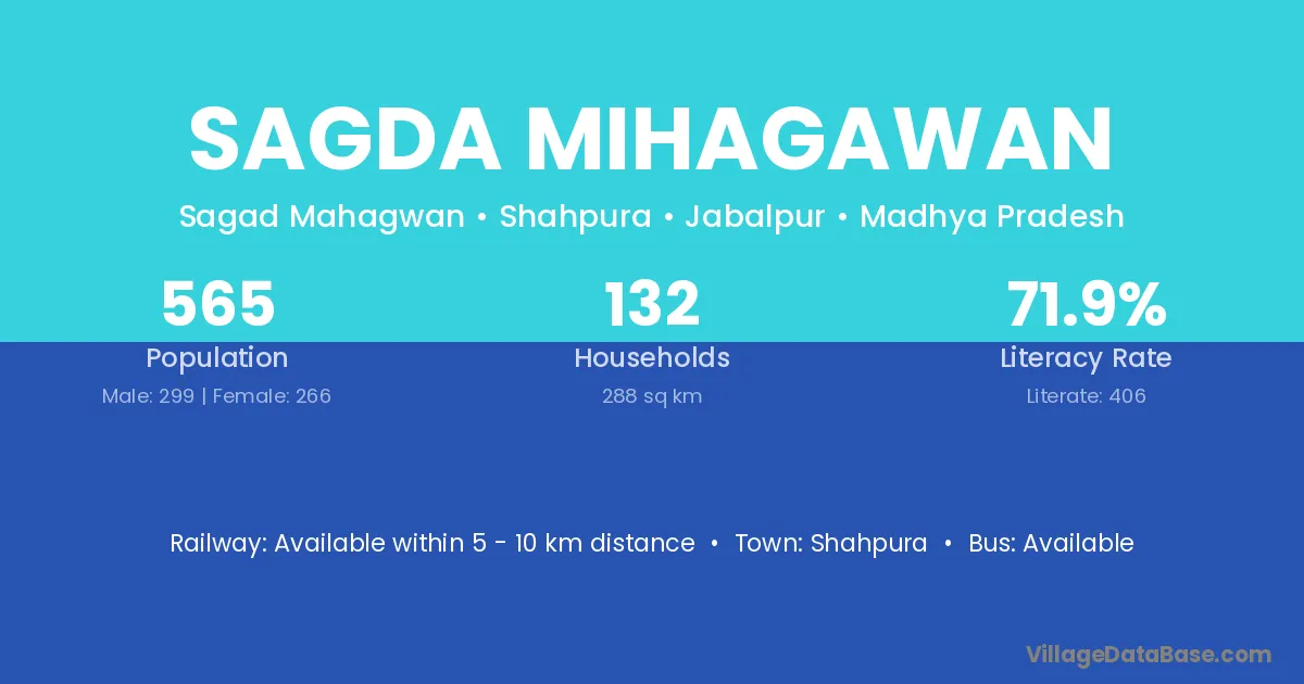 Sagda Mihagawan village has a total population of 565 people, of which 299 are males and 266 are females.