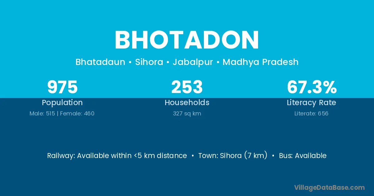 Sihora (7 km) is the nearest town to Bhotadon village for major economic activities and is located approximately 7 km away.