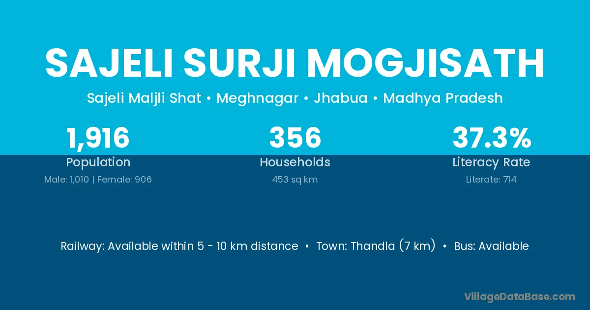 Sajeli Surji Mogjisath village has a total population of 1,916 people, of which 1,010 are males and 906 are females.