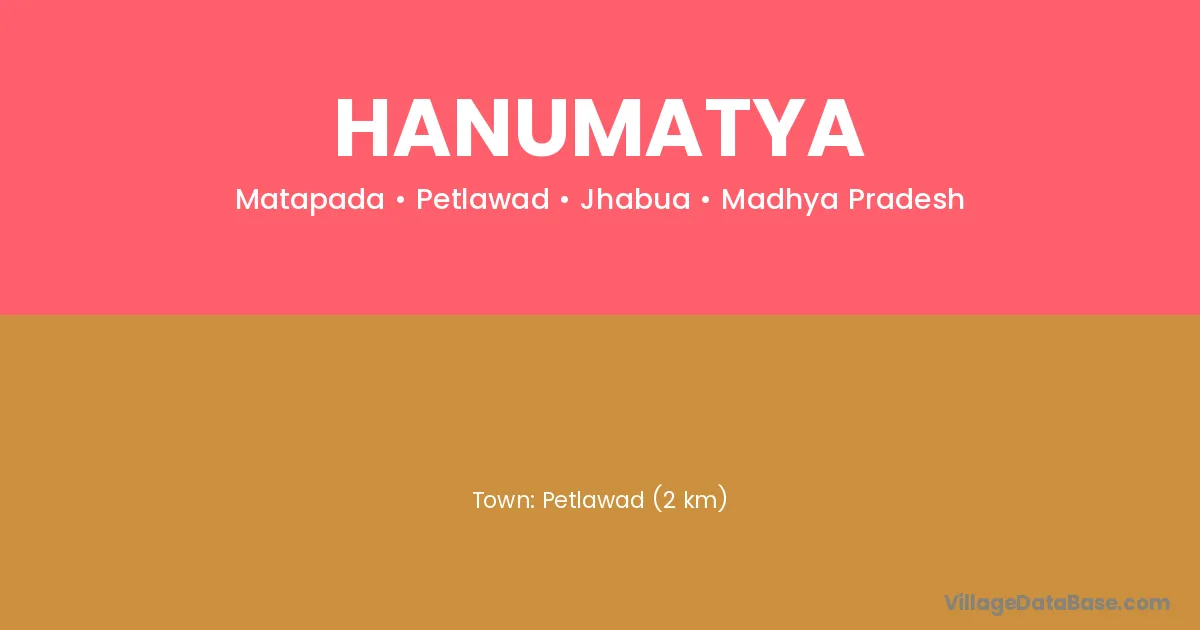 Petlawad (2 km) is the nearest town to Hanumatya village for major economic activities and is located approximately 2 km away.
