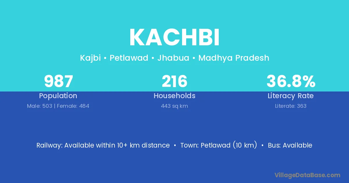 Petlawad (10 km) is the nearest town to Kachbi village for major economic activities and is located approximately 10 km away.