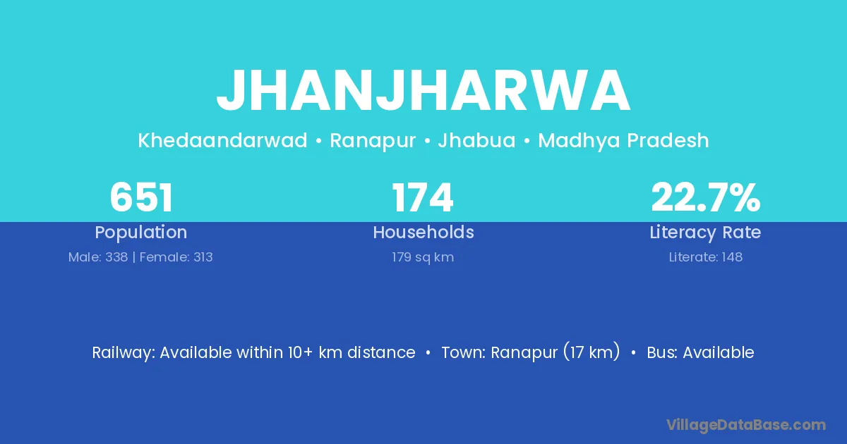 Ranapur (17 km) is the nearest town to Jhanjharwa village for major economic activities and is located approximately 17 km away.