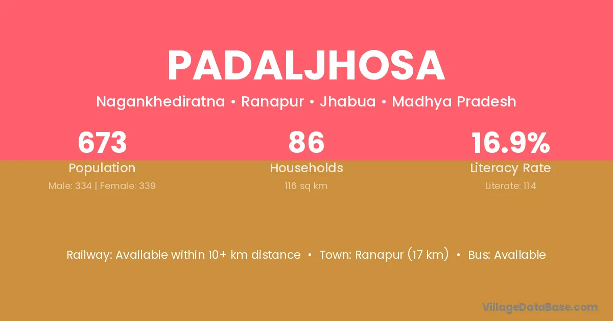 Ranapur (17 km) is the nearest town to Padaljhosa village for major economic activities and is located approximately 17 km away.