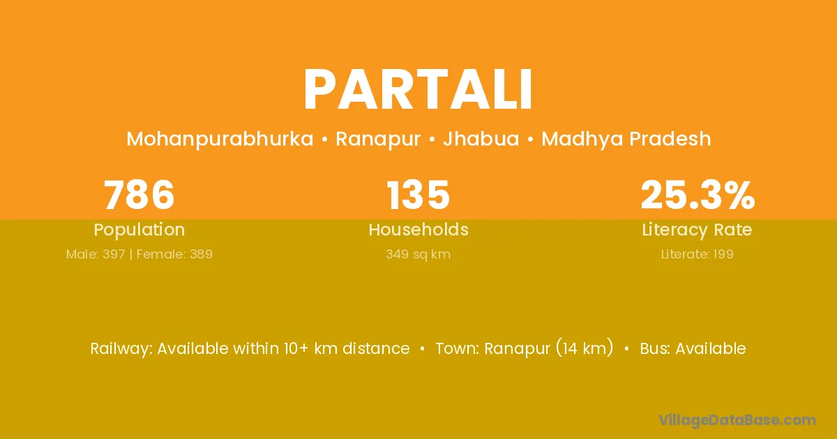Ranapur (14 km) is the nearest town to Partali village for major economic activities and is located approximately 14 km away.