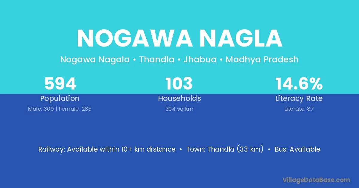 Thandla (33 km) is the nearest town to Nogawa Nagla village for major economic activities and is located approximately 33 km away.