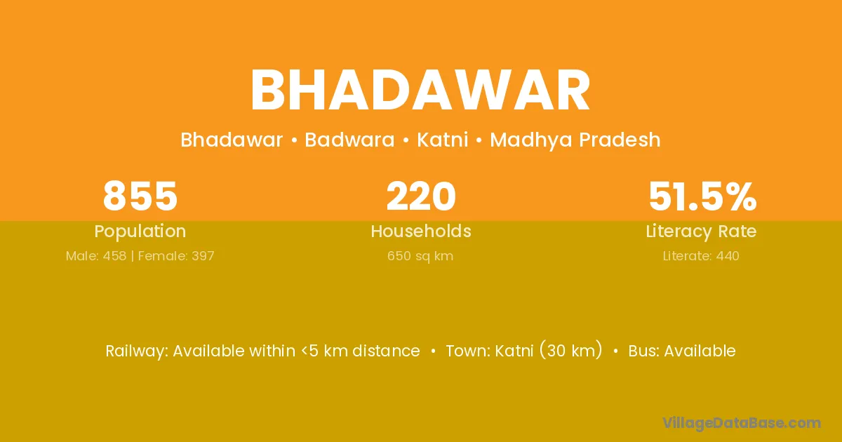 Katni (30 km) is the nearest town to Bhadawar village for major economic activities and is located approximately 30 km away.