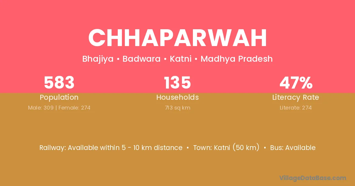 Katni (50 km) is the nearest town to Chhaparwah village for major economic activities and is located approximately 50 km away.