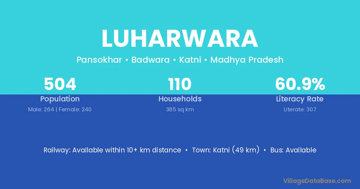 Katni (49 km) is the nearest town to Luharwara village for major economic activities and is located approximately 49 km away.
