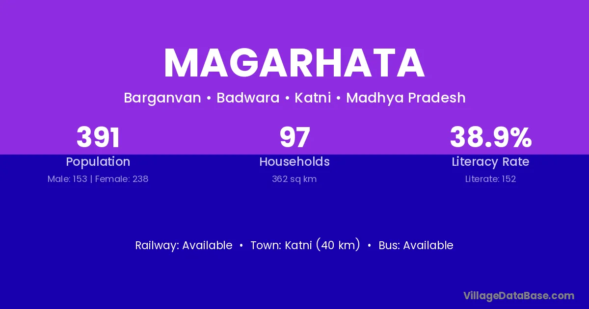 Katni (40 km) is the nearest town to Magarhata village for major economic activities and is located approximately 40 km away.