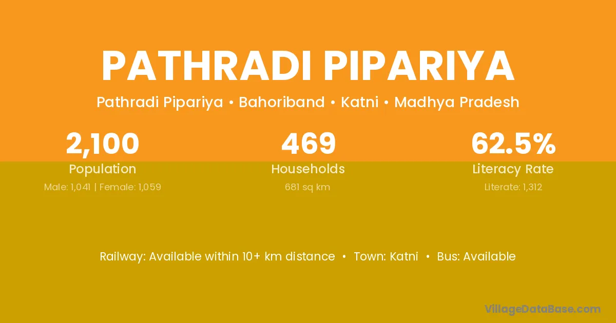 Pathradi Pipariya village has a total population of 2,100 people, of which 1,041 are males and 1,059 are females.
