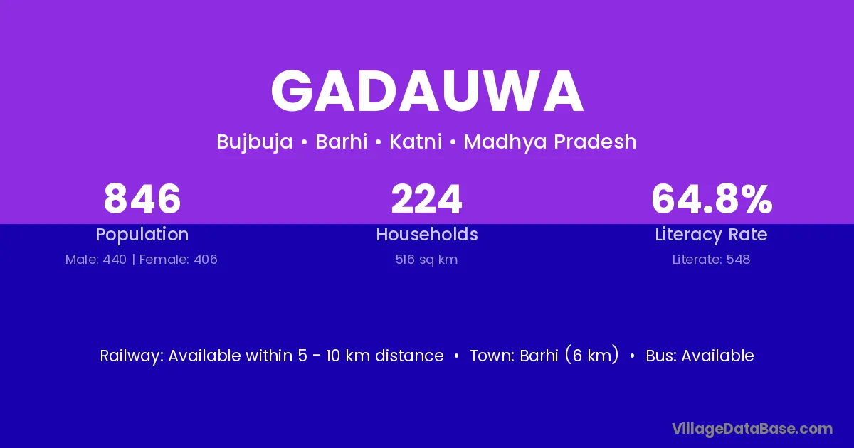 Barhi (6 km) is the nearest town to Gadauwa village for major economic activities and is located approximately 6 km away.