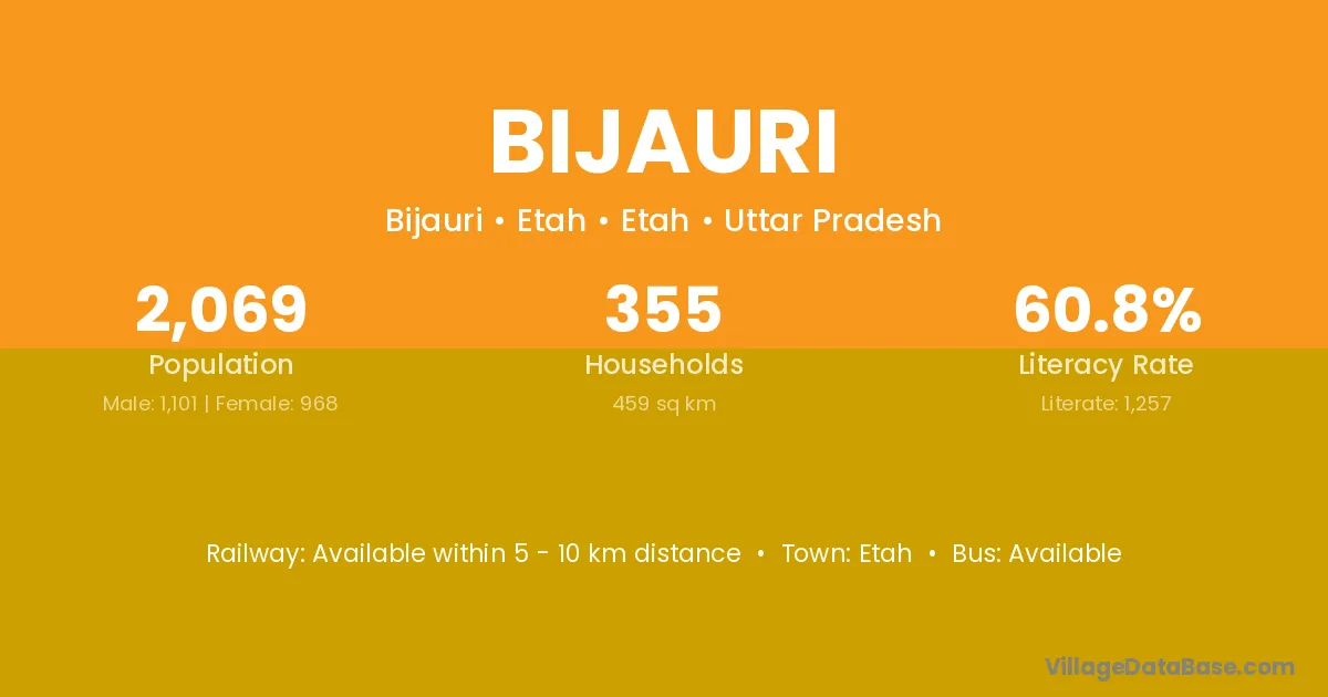 The literacy rate of Bijauri village is 29.63%. Male literacy stands at 31.25% and female literacy at 27.27%.
