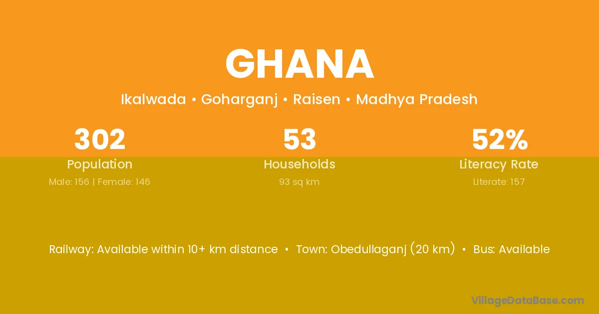 Katni (85 km) is the nearest town to Ghana village for major economic activities and is located approximately 85 km away.