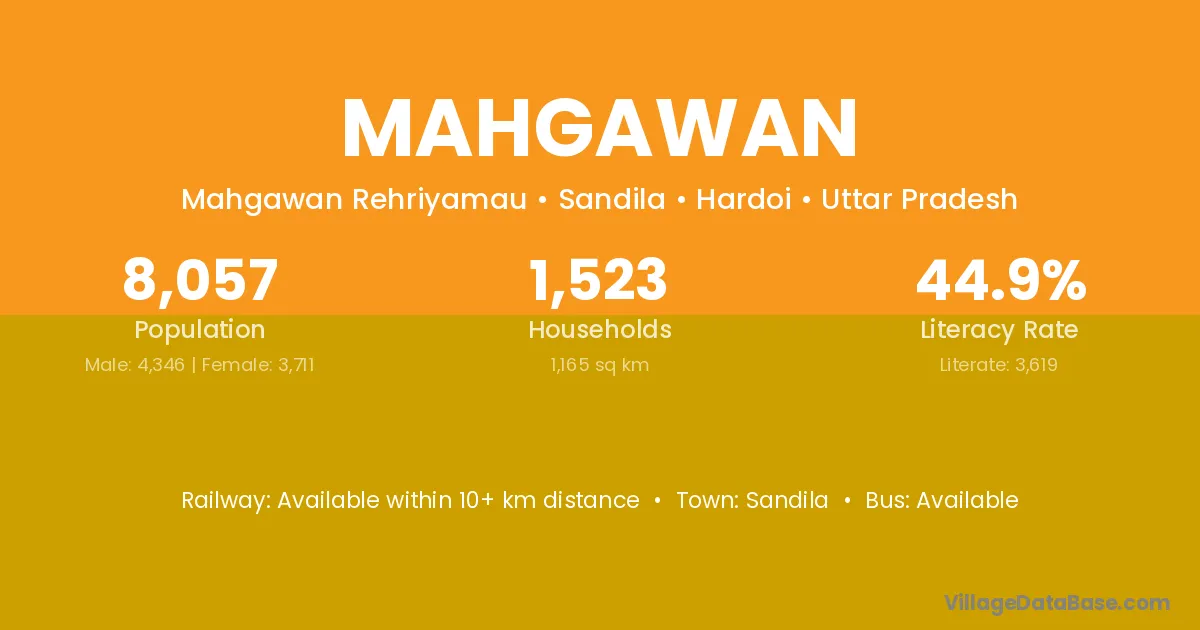 Mahgawan village has a total population of 1,521 people, of which 787 are males and 734 are females.