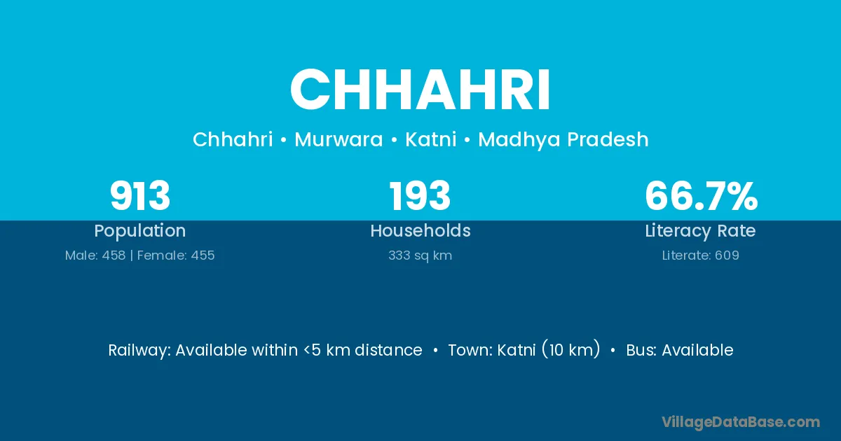 Katni (10 km) is the nearest town to Chhahri village for major economic activities and is located approximately 10 km away.