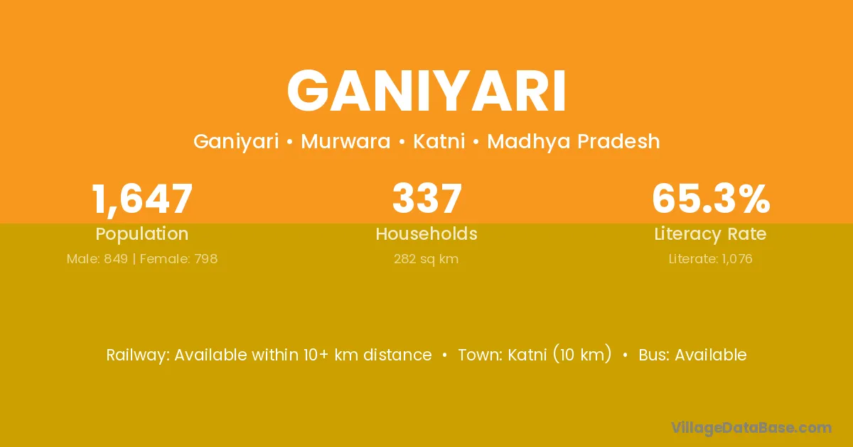 Katni (10 km) is the nearest town to Ganiyari village for major economic activities and is located approximately 10 km away.