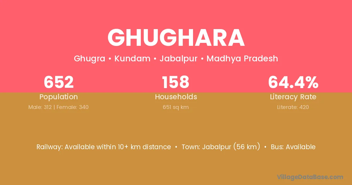 Katni (6 km) is the nearest town to Ghughara village for major economic activities and is located approximately 6 km away.
