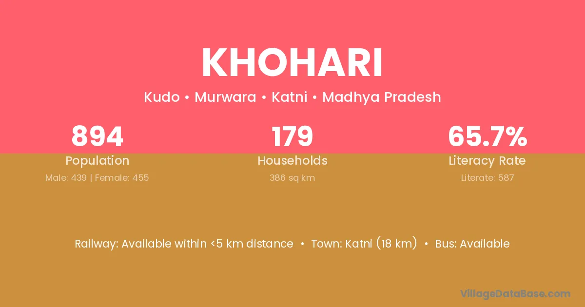 Katni (18 km) is the nearest town to Khohari village for major economic activities and is located approximately 18 km away.