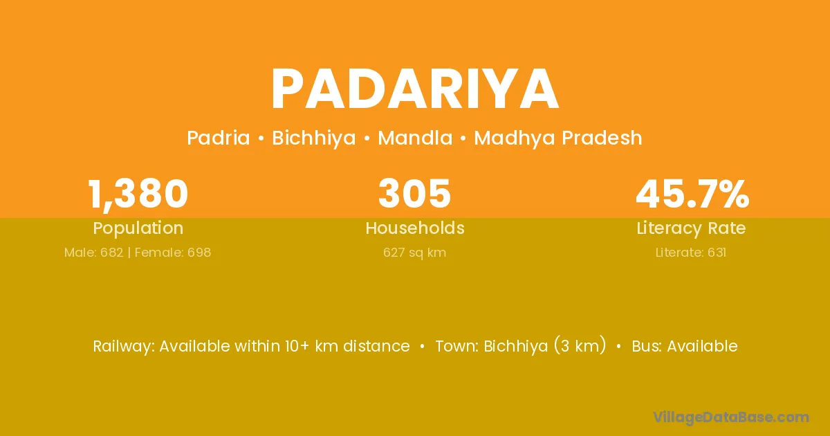 Katni (8 km) is the nearest town to Padariya village for major economic activities and is located approximately 8 km away.