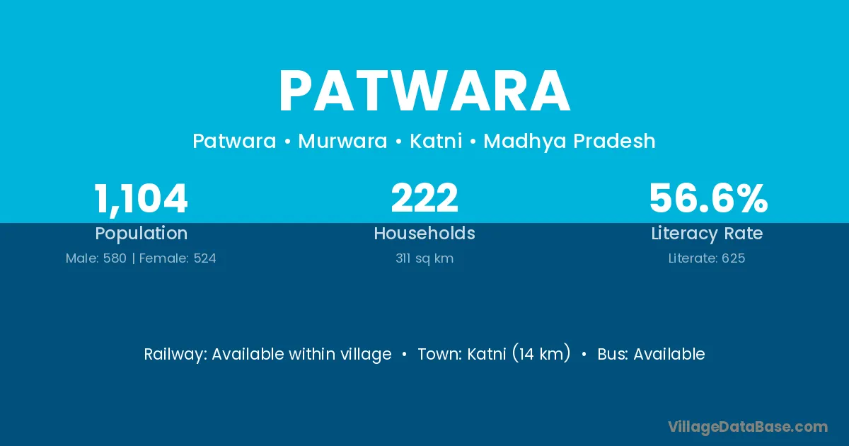 Katni (14 km) is the nearest town to Patwara village for major economic activities and is located approximately 14 km away.
