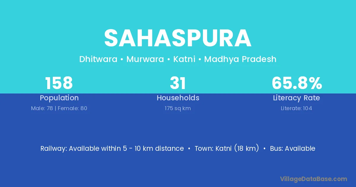 Katni (18 km) is the nearest town to Sahaspura village for major economic activities and is located approximately 18 km away.