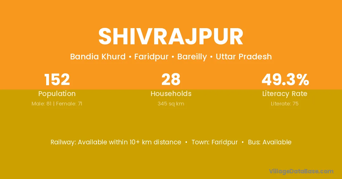 Katni (12 km) is the nearest town to Shivrajpur village for major economic activities and is located approximately 12 km away.