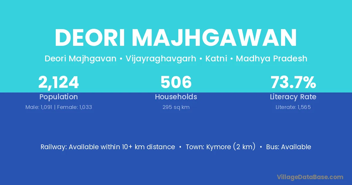 Kymore (2 km) is the nearest town to Deori Majhgawan village for major economic activities and is located approximately 2 km away.