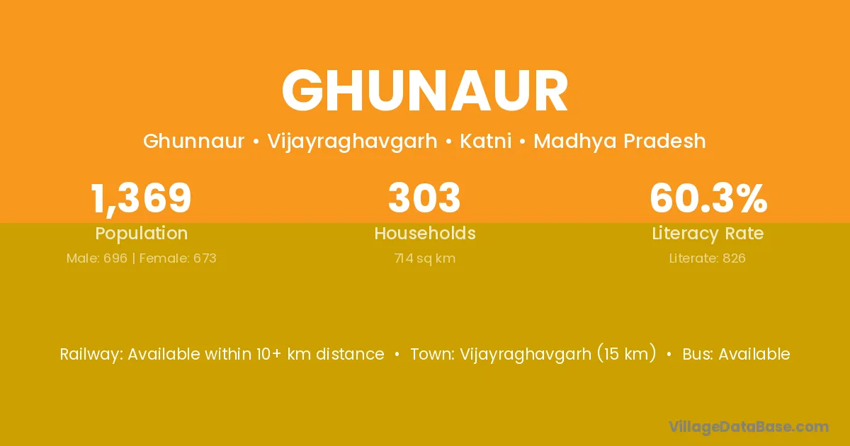 Vijayraghavgarh (15 km) is the nearest town to Ghunaur village for major economic activities and is located approximately 15 km away.
