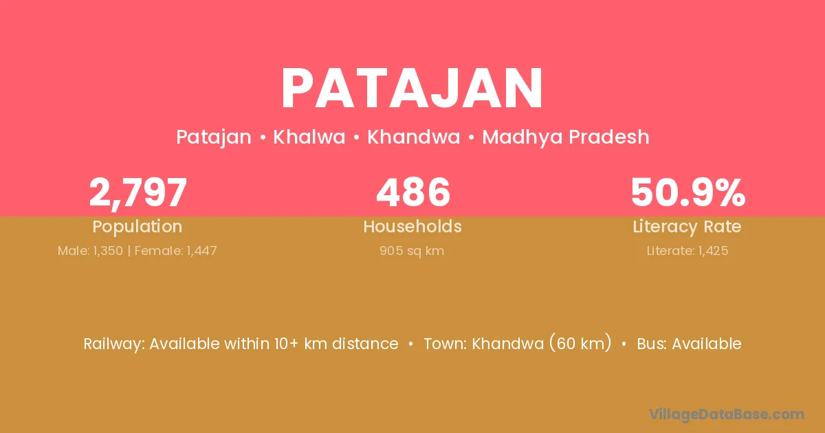 Khandwa (60 km) is the nearest town to Patajan village for major economic activities and is located approximately 60 km away.