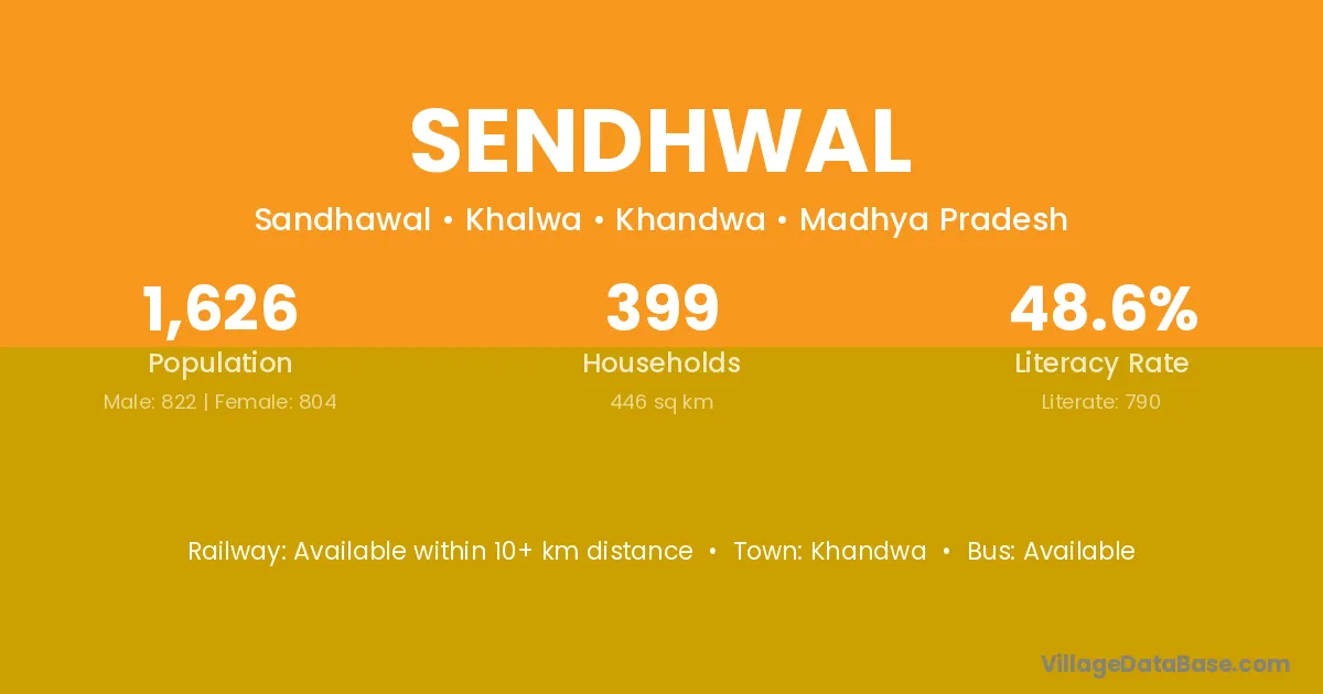 Khandwa is the nearest town to Sendhwal village for major economic activities