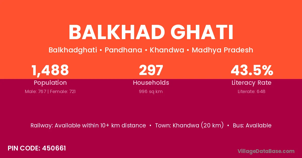 Khandwa (20 km) is the nearest town to Balkhad Ghati village for major economic activities and is located approximately 20 km away.