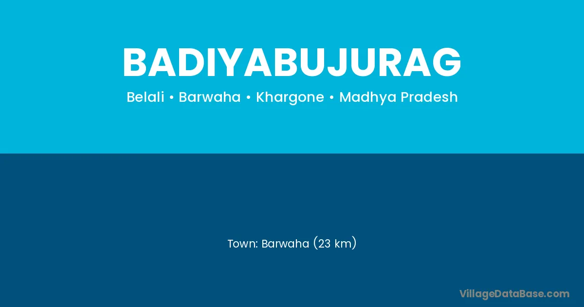 Barwaha (23 km) is the nearest town to Badiyabujurag village for major economic activities and is located approximately 23 km away.