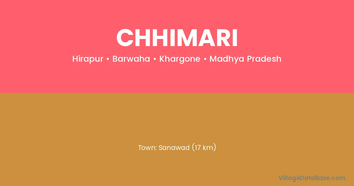 Sanawad (17 km) is the nearest town to Chhimari village for major economic activities and is located approximately 17 km away.