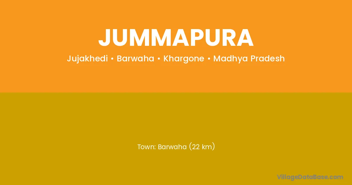 Barwaha (22 km) is the nearest town to Jummapura village for major economic activities and is located approximately 22 km away.