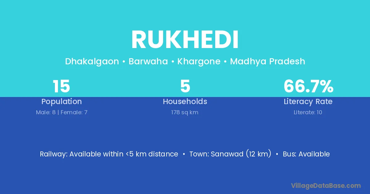 Sanawad (12 km) is the nearest town to Rukhedi village for major economic activities and is located approximately 12 km away.