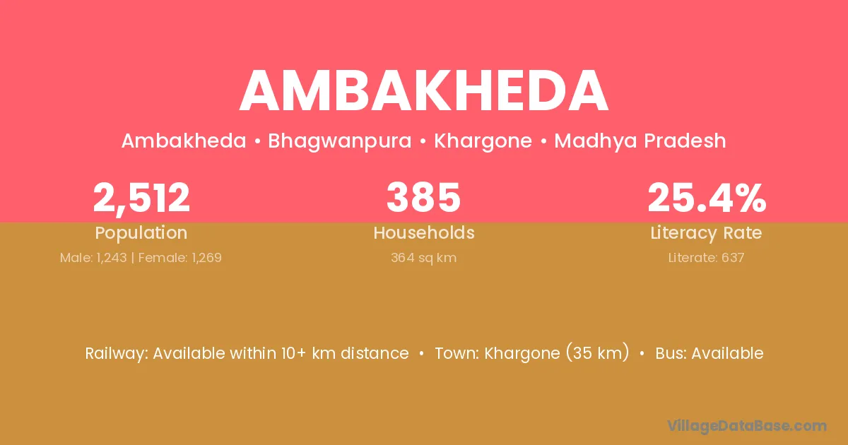 Khargone (35 km) is the nearest town to Ambakheda village for major economic activities and is located approximately 35 km away.