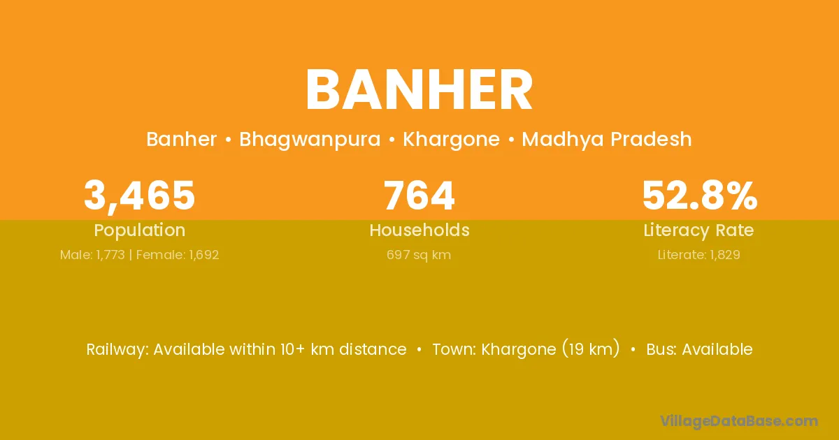 Khargone (19 km) is the nearest town to Banher village for major economic activities and is located approximately 19 km away.