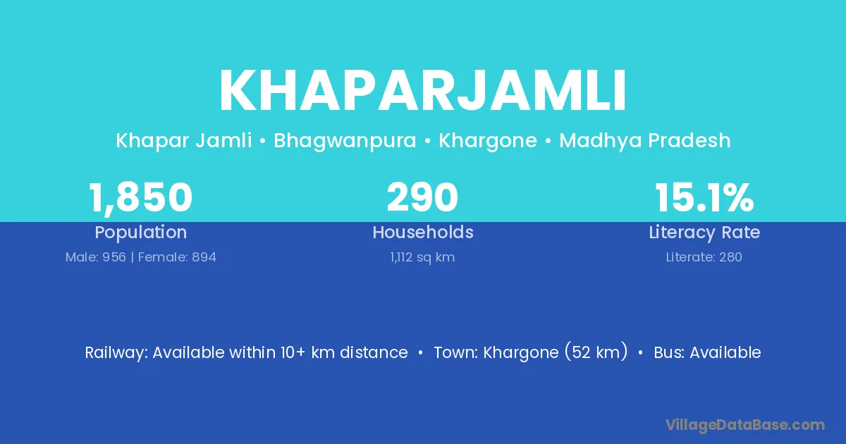 Khargone (52 km) is the nearest town to Khaparjamli village for major economic activities and is located approximately 52 km away.