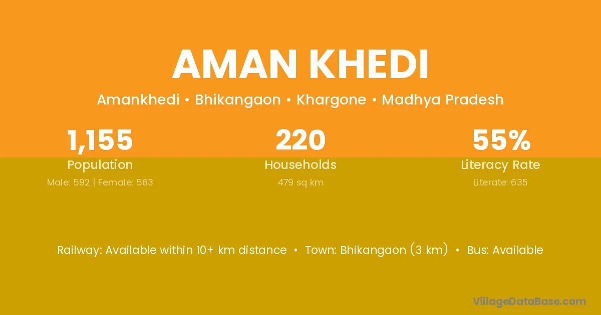 Bhikangaon (3 km) is the nearest town to Aman Khedi village for major economic activities and is located approximately 3 km away.