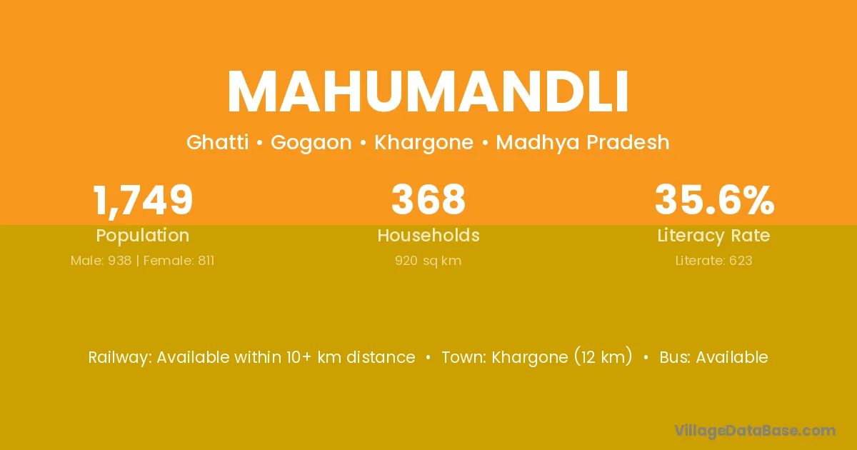 Khargone (12 km) is the nearest town to Mahumandli village for major economic activities and is located approximately 12 km away.
