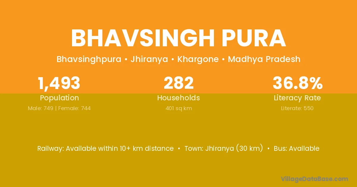 Bhavsingh Pura village has a total population of 1,493 people, of which 749 are males and 744 are females.