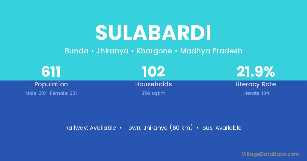 Sulabardi village has a total population of 611 people, of which 310 are males and 301 are females.