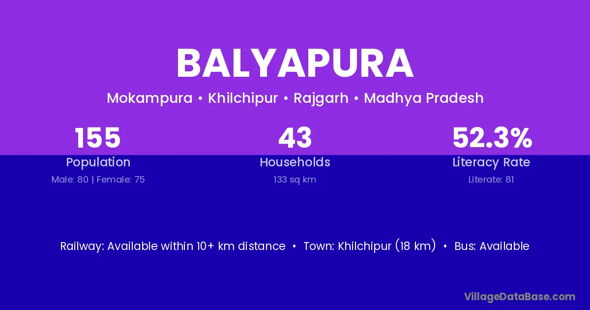 Kasrawad (16 km) is the nearest town to Balyapura village for major economic activities and is located approximately 16 km away.