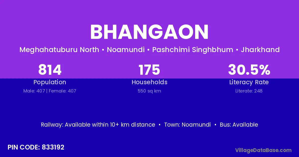 There are approximately 202 households in Bhangaon village.