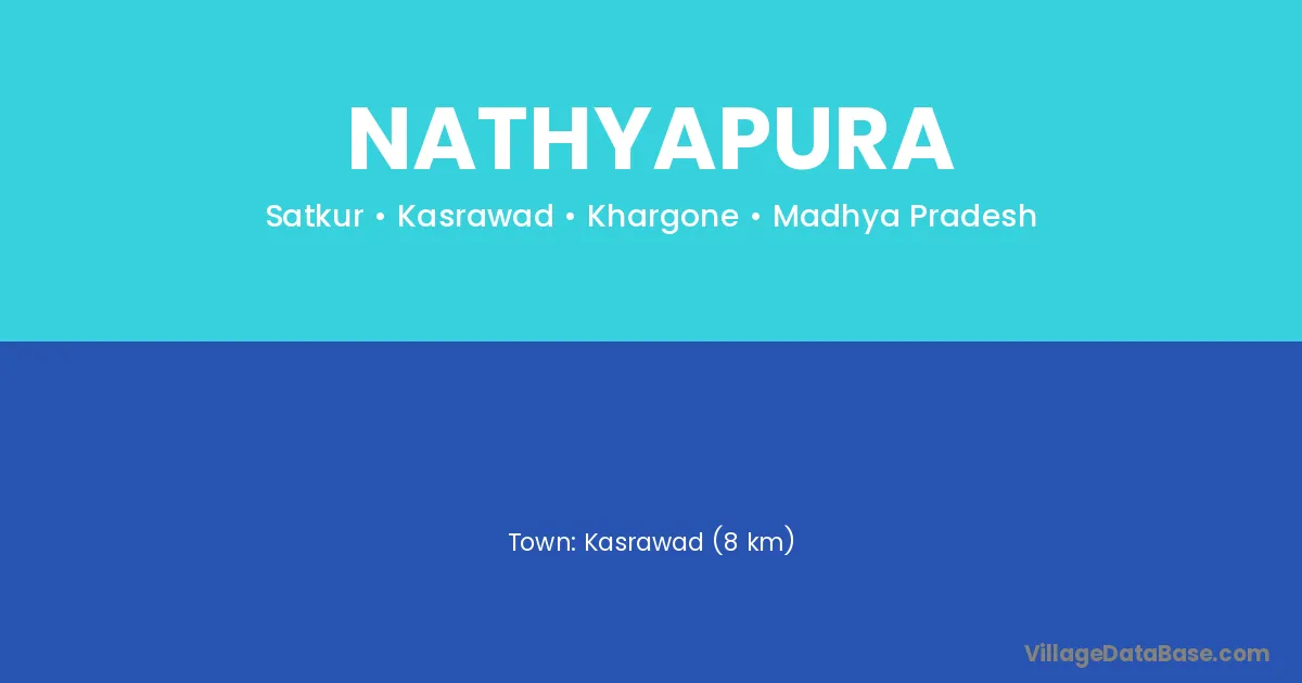 Kasrawad (8 km) is the nearest town to Nathyapura village for major economic activities and is located approximately 8 km away.