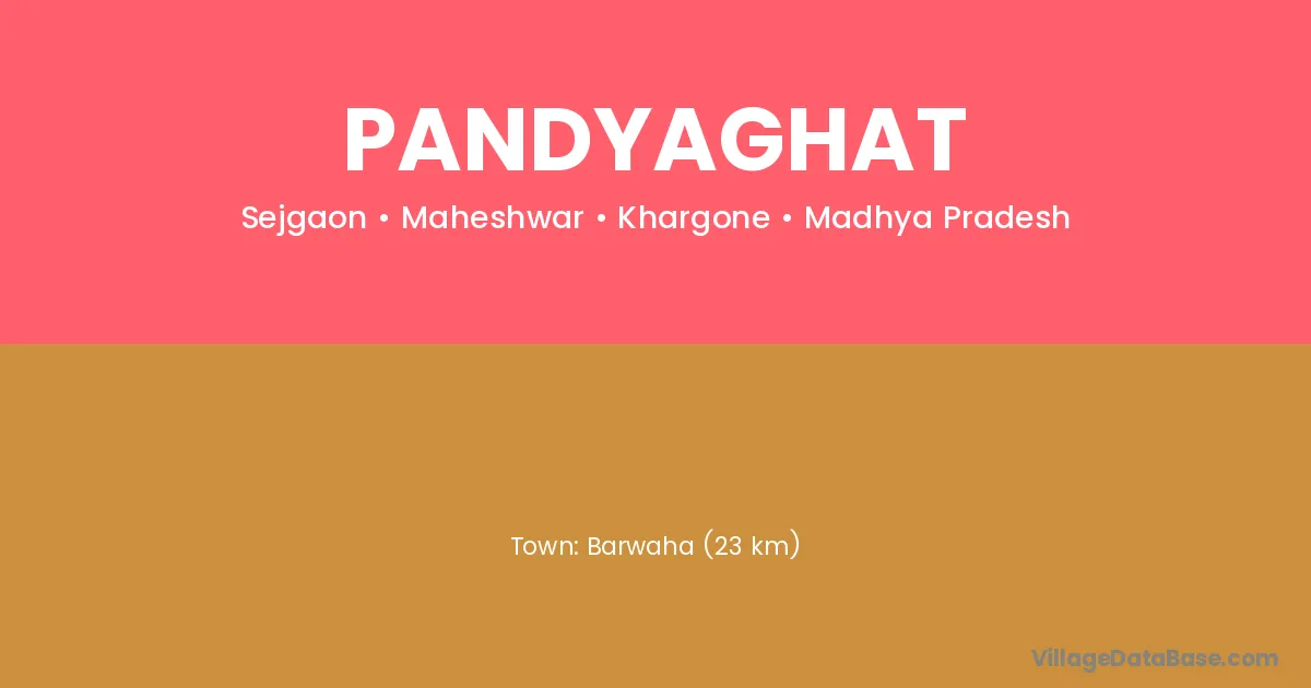 Barwaha (23 km) is the nearest town to Pandyaghat village for major economic activities and is located approximately 23 km away.