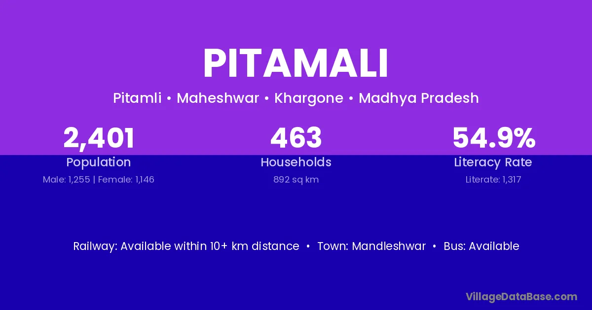 Mandleshwar is the nearest town to Pitamali village for major economic activities