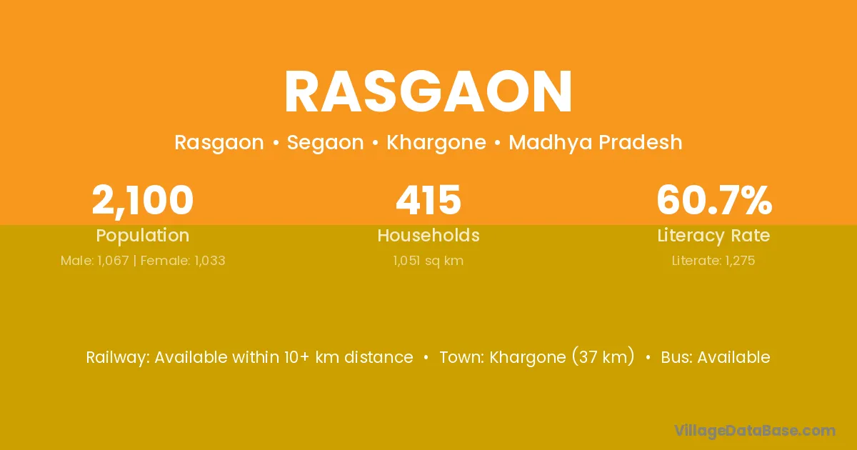 Khargone (37 km) is the nearest town to Rasgaon village for major economic activities and is located approximately 37 km away.