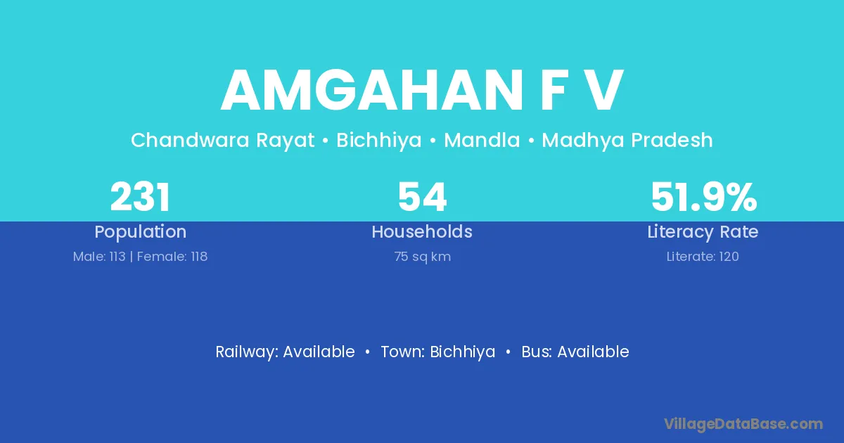 Amgahan F V village has a total population of 231 people, of which 113 are males and 118 are females.