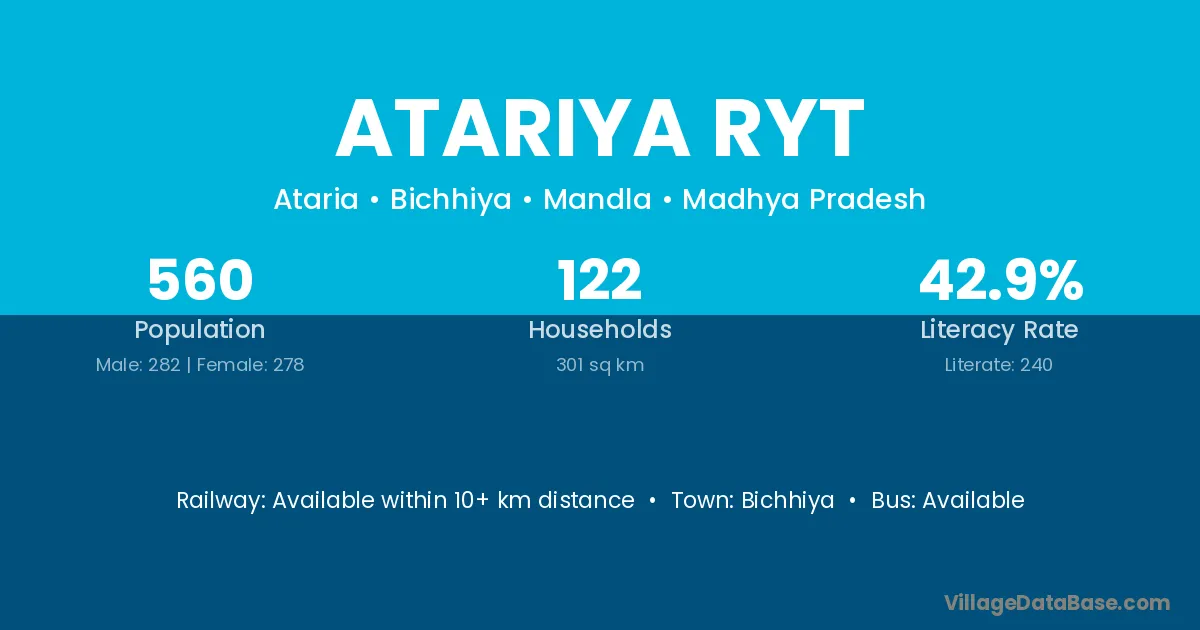 Atariya Ryt village has a total population of 560 people, of which 282 are males and 278 are females.